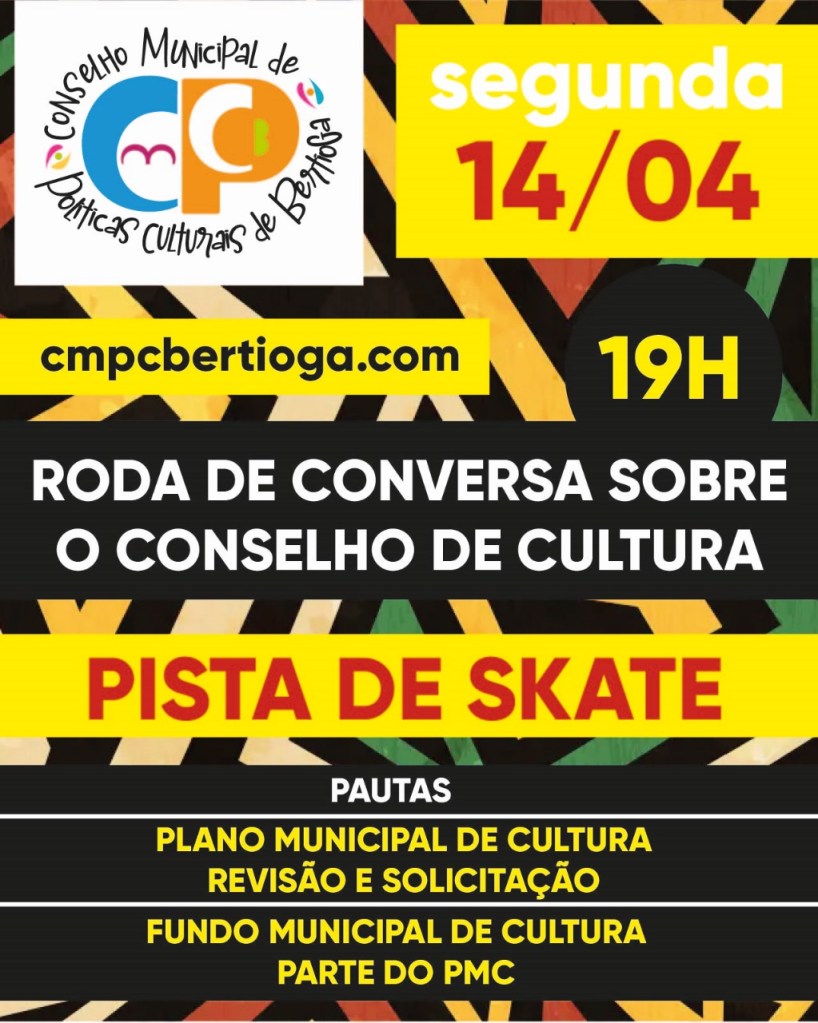Na segunda-feira, dia 14/04, os membros do Conselho Municipal de Políticas Culturais de Bertioga estão convocando uma reunião aberta, com a participação de toda a população, para apresentar o recém instituído CMPC da gestão 2025/2027 e para conversarmos sobre o Plano Municipal de Cultura, lei que existe desde 2016 e precisa ser colocada em prática – que engloba, inclusive, a existência do Fundo Municipal de Cultura, como parte do orçamento Municipal.